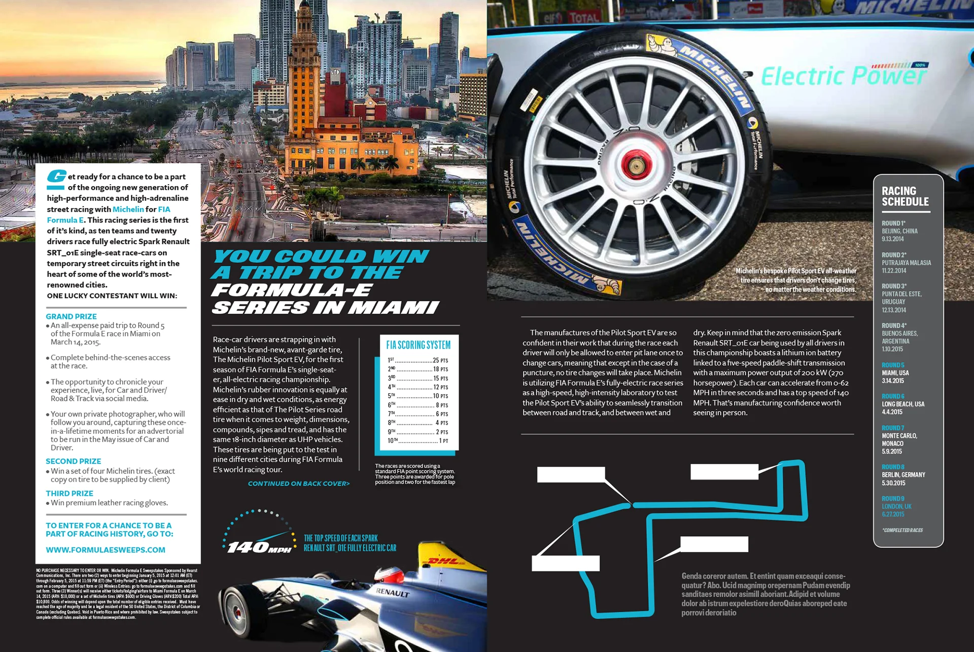 An all-expense paid trip to Round 5 of the Formula E race in Miami on March 14, 2015.